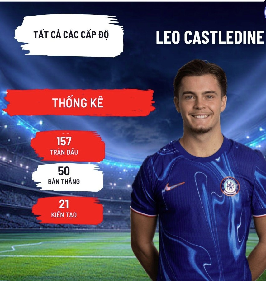 Không chỉ riêng mùa giải hiện tại, tổng thể sự nghiệp của Castledine ở các cấp độ trẻ lẫn chuyên nghiệp cũng khá ấn tượng. Tính đến nay, anh đã ra sân tổng cộng 159 trận, ghi được 50 bàn thắng và đóng góp 21 đường kiến tạo. Những con số đó phần nào phản ánh tiềm năng và sự phát triển bền bỉ của cầu thủ trưởng thành từ lò đào tạo Chelsea.