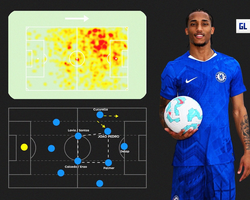 Về mặt hồ sơ cầu thủ (profile), João Pedro không phải là mẫu trung phong cổ điển, điều Chelsea đã có với Jackson hay Delap, mà là mẫu second striker, hoặc đúng hơn là “số 10 lệch trái”, thường xuyên bó vào trung lộ, kết nối lối chơi. Tại Brighton, anh nhiều lần chơi lùi, nhận bóng từ giữa sân và kéo bóng lên phía trước, vai trò phản ánh rõ qua bản đồ nhiệt và các chỉ số chuyền bóng, rê bóng. Mà cụ thể là Pedro sở hữu kỹ năng xử lý một chạm định hướng, cảm quan không gian và khả năng giữ bóng quay lưng cực tốt. Thể hình 1m88 cùng sự năng nổ giúp anh phù hợp với hệ thống pressing cao, yếu tố Maresca luôn đề cao.